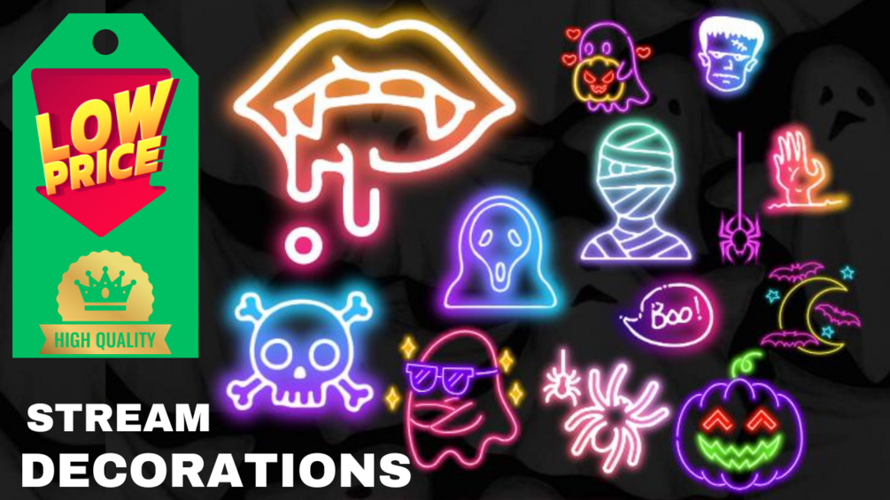 Twitch Stream Decor | Spooky Halloween Decor Set - Neon Ghost face, Mummy, Skull, Pumpkin and more